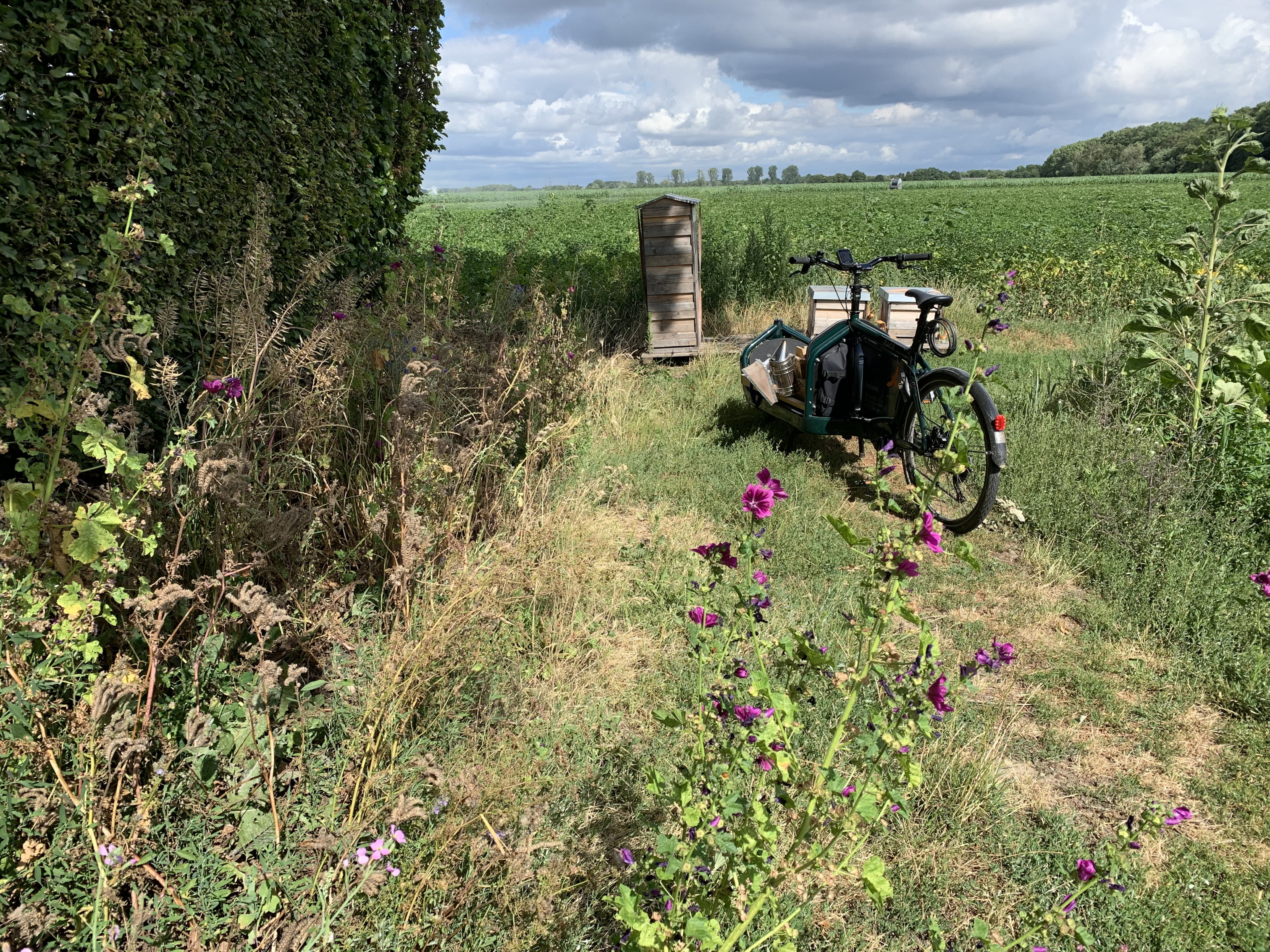 Weiter versuche ich besonders nachhaltig zu agieren. Dazu besuche meiner Bienenstände mit dem Lastenrad.